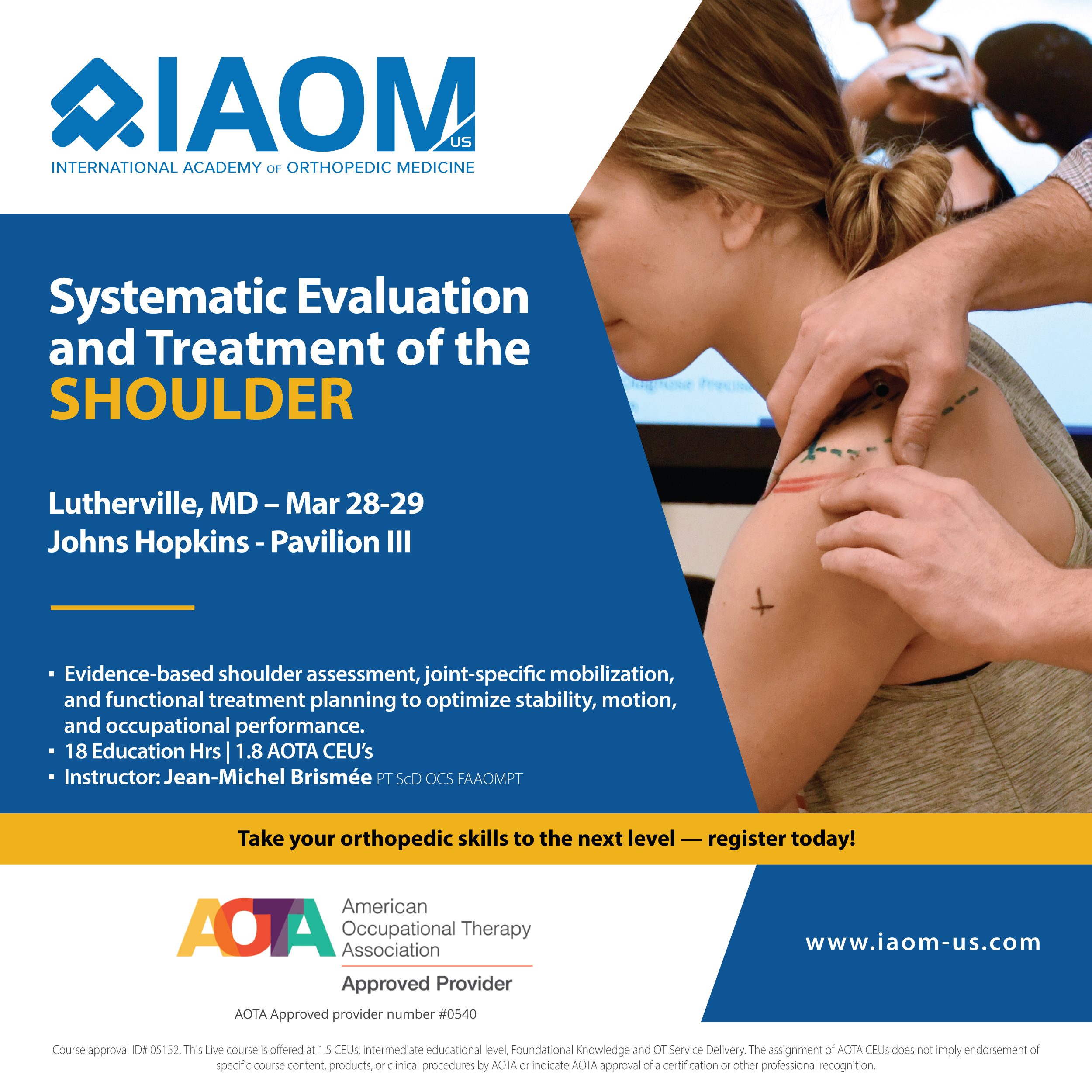 The International Academy of Orthopedic Medicine, IAOM-US, is an institution of distinguished clinicians who have contributed to establishing the highest standards of clinical examination and treatment principles in non-surgical orthopedic medicine.