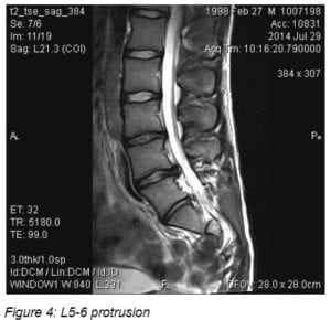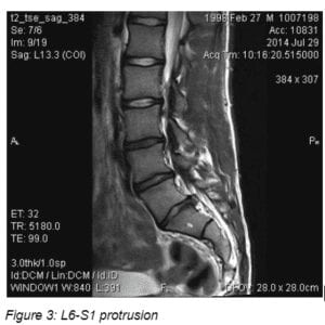 Magnetic Resonance Imaging (MRI) Imaging was available at the January visit and demonstrated prominent protrusions at two levels. See Figures 2 to 4